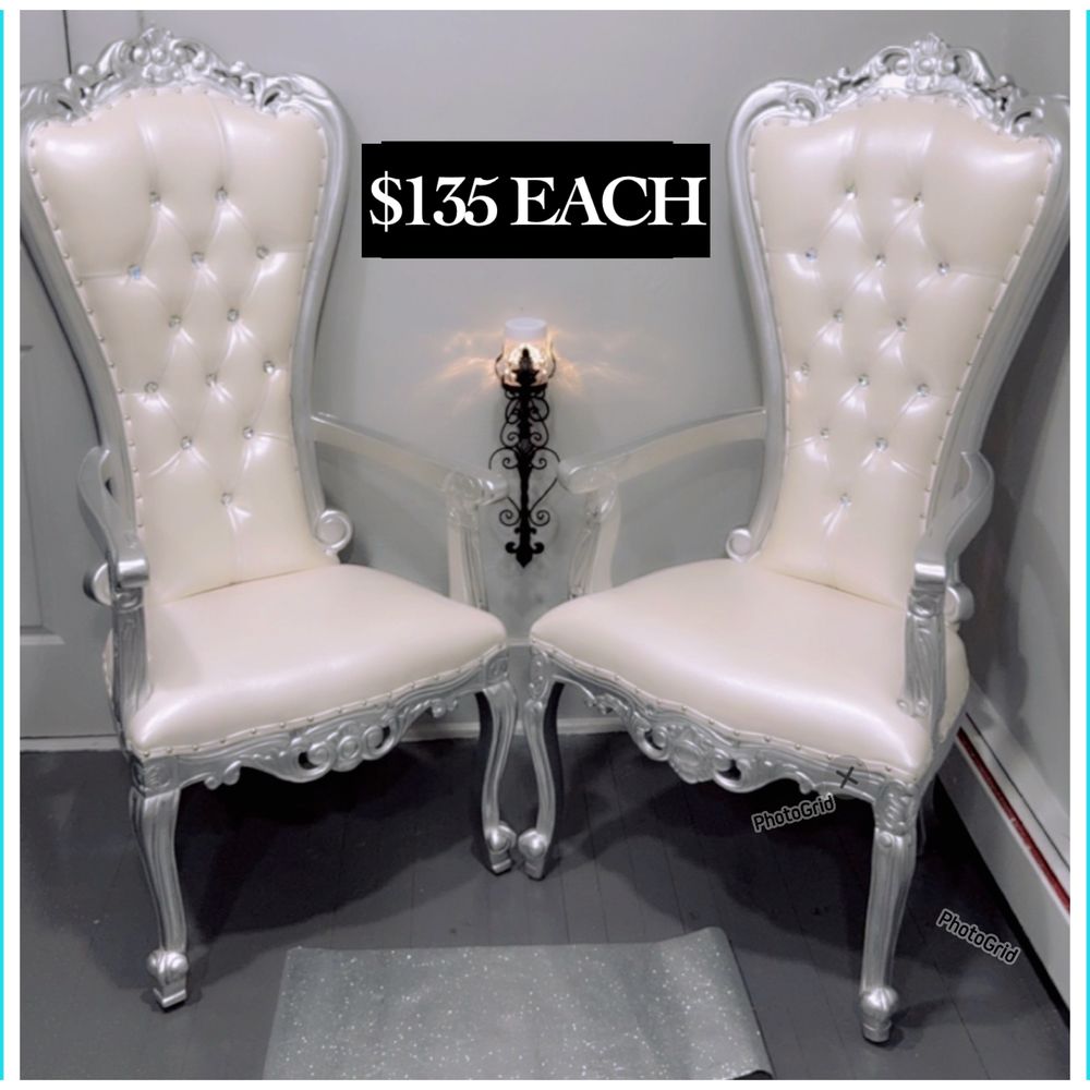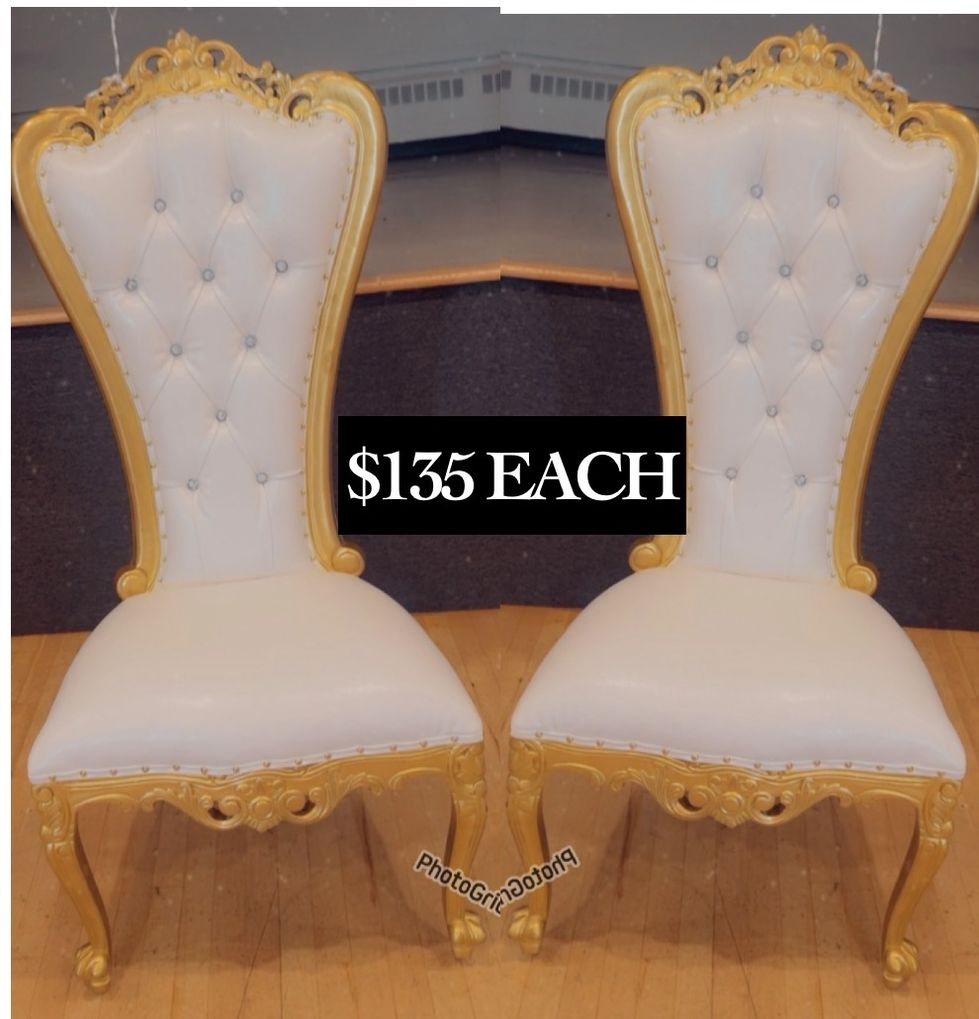 THE PEARLY WHITE THRONE CHAIRS – $135 each