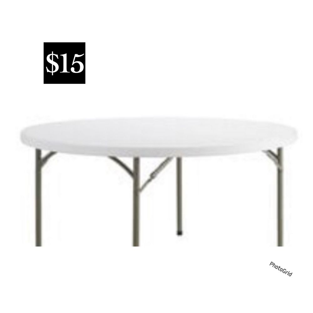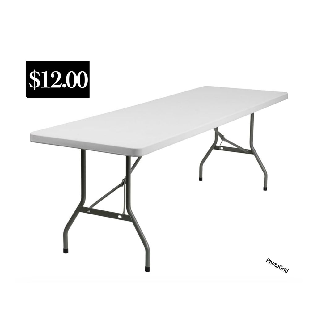Folding Tables Fit 8 chairs a table for 6 hours; after 6hrs (5 Dollars every hour), we set up, deliver, & Pick up(mileage included in price)